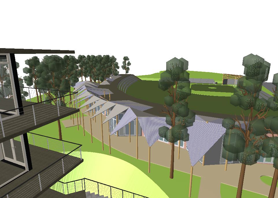 La Selva has a unique area with a softball field, which double as an amphitheater and the outfield wall doubles as a building structure, which is home to many of the resort activities. This area is the perfect place to lounge around in the field or sit atop the planted green roof of the outfield. Our unique outfield wall is teared up to reach its 10 foot level which will get planted with rows of flowers to surround the field.